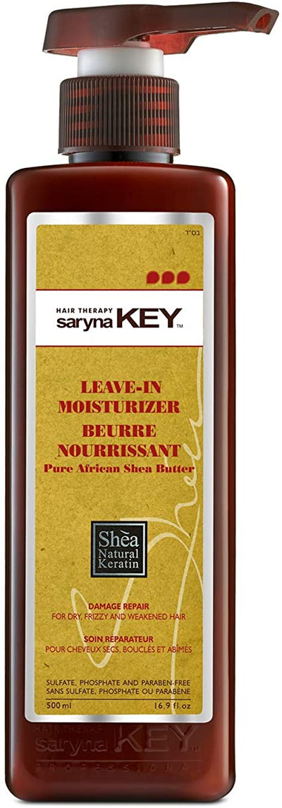 SARYNA KEY™ Damage Repair Leave-In Moisturizer 500ml has an enriched concentration of Shea Butter which contains natural keratin, softeners and silk proteins. It smoothes your hair and optimally protects it from weather and color damage. Our product is formulated to nourish and fortify your hair whilst leaving it silkily-soft and preventing it from becoming dry, brittle and damaged. Color-safe.