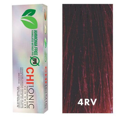 CHI Ionic coloring 4RV, Permanent Color without ammonia, incomparable brilliance. Covers 100% white hair, based on organic pigments of natural origin, olive oil, amino acids and silk