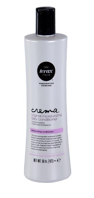 Terax Original Crema is a ultra moisturizing daily conditioner for all hair types. The cult favorite, this luxurious conditioner, scented with rice flower, shea, bergamot, and juniper is the ultimate way to revitalize stressed tresses. Crema's intense moisturizing properties are designed to heal and restore split ends, breakage, dryness associated with chemical treatments and environmental damage (wind, sun, chlorine, and sea salt deposits), as well as combat static electricity. By altering the pH level of the hair, Crema opens the cuticle and allows moisture into the hair shaft leaving it soft and silky. Use Crema daily for healthy, manageable, and frizz-free hair.