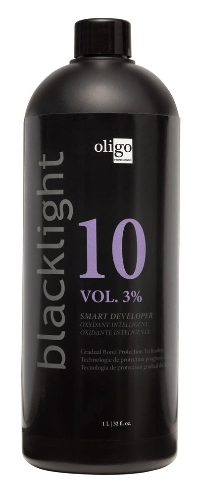 The Blacklight Smart Developer must be mixed with a Blacklight Lightener or Powershade. It is specially formulated to provide perfect consistency of final mix, to deliver optimal lifting and to facilitate application. The Blacklight developers ensure consistent and reliable results with each application.