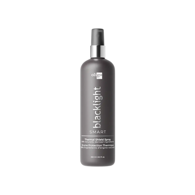 Blacklight Smart Shield Spray is a multifunctional alcohol-free system that offers heat protection up to 400F (204⁰C) while also controlling high humidity and frizz. It is formulated with a natural sugar complex composed of a rare edible species of mushroom (Polyporus Umbrellatus), hyaluronic acid derivative (Sodium Hyaluronate) and fructose. Together, these ingredients combined create a protective film on the hair, absorbing the heat from styling tools that might otherwise harm hair fibers and ensuring the prolonged health of your hair.
