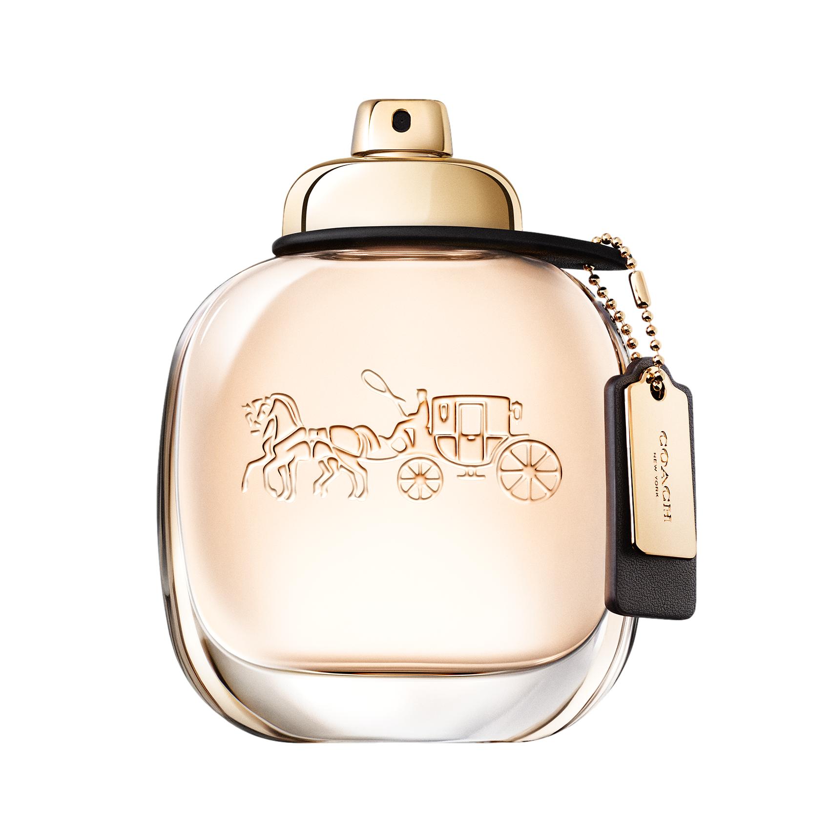 Coach introduces a fragrance full of contrasts inspired by the spontaneous energy and downtown style of New York City. Spirited and sparkling, yet sensual and feminine, Coach Eau de Parfum opens with bright, sparkling raspberry, which gives way to creamy Turkish roses, before drying down to a sensual suede musk base note.