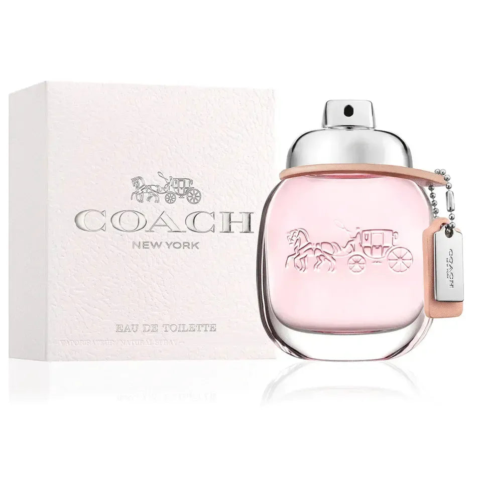 Coach introduces a fragrance full of contrasts inspired by the spontaneous energy and downtown style of New York City. Spirited and sparkling, yet sensual and feminine, Coach Eau de Parfum opens with bright, sparkling raspberry, which gives way to creamy Turkish roses, before drying down to a sensual suede musk base note.