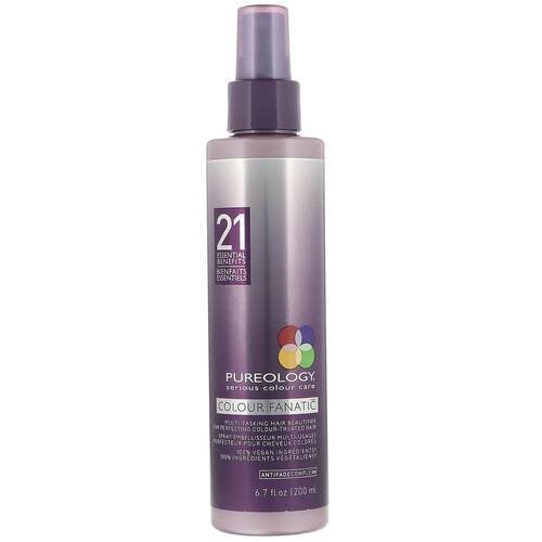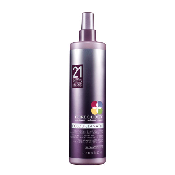 The Colour Fanatic spray by Pureology is incredibly versatile, having more than 21 benfits for hair. Thanks to its fennel extract, keravis protein and varied oil formula, hair is left: hydrated, protected from heat, detangled, shiny etc.
