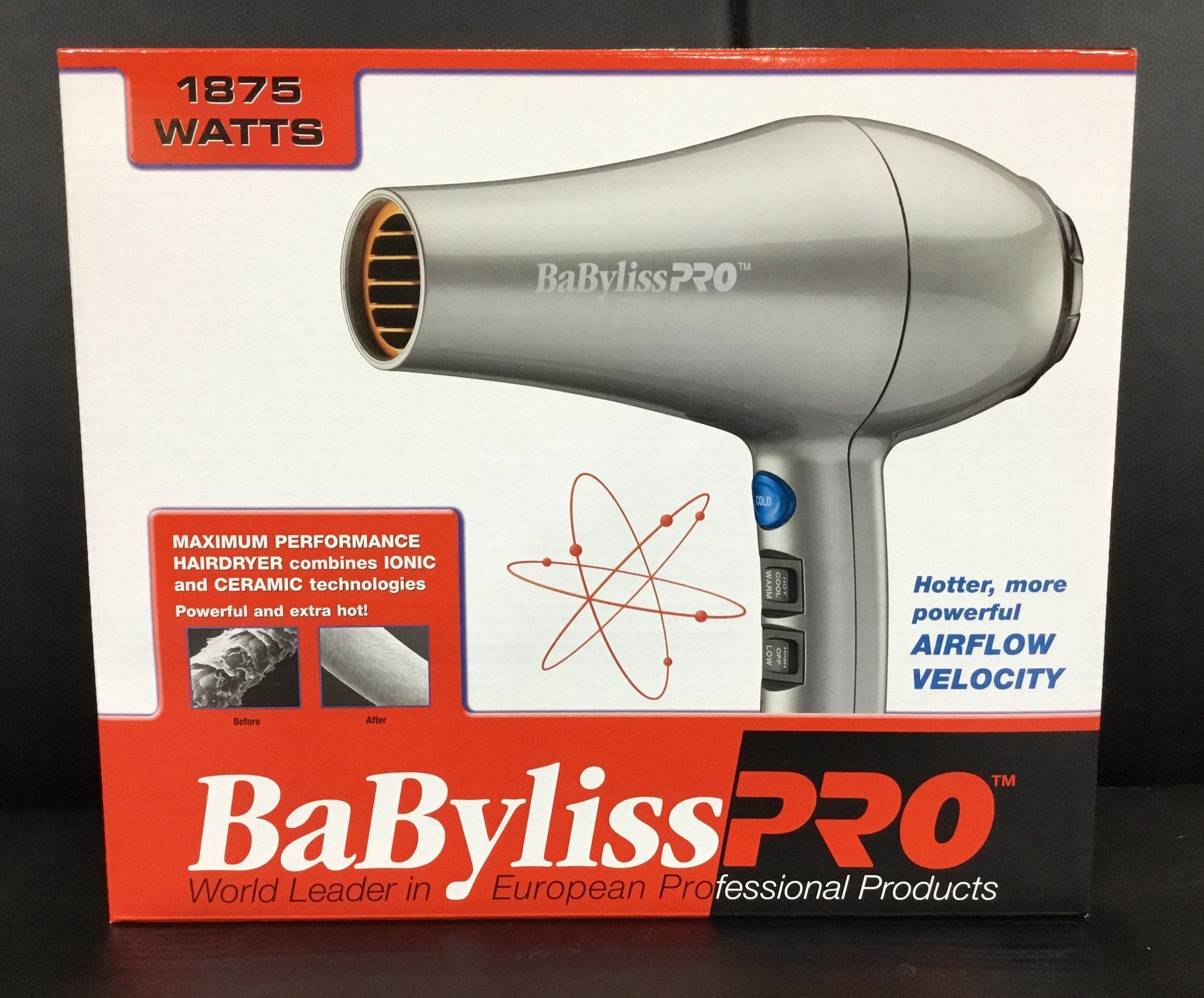 BaByliss PRO Professional Ionic Ceramic Hairdryer Give your hair a shiny, smooth finish with this powerful BaByliss Pro hair dryer. Long life Ac Motor and high heat and poweful airflow. Built-in ion generator releases millions of negative ions to dry hair faster, lock in the hair's natural moisture and eliminate frizz. The result is full volume, radiant hair. Ceramic grill radiates negative ions for maximum performance. High Heat and EXTRA powerful Airflow. High Torque Motor for FAST Drying.